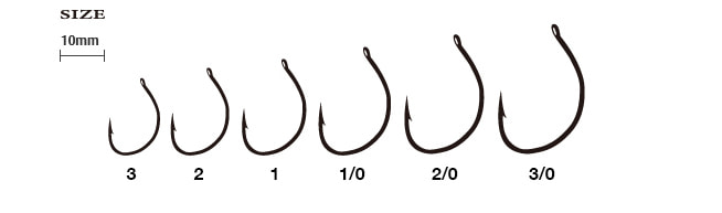 | サイズ (入本数) | 3 (9) | 2 (9) | 1 (9) | 1/0 (8) | 2/0 (8) | 3/0 (7) |